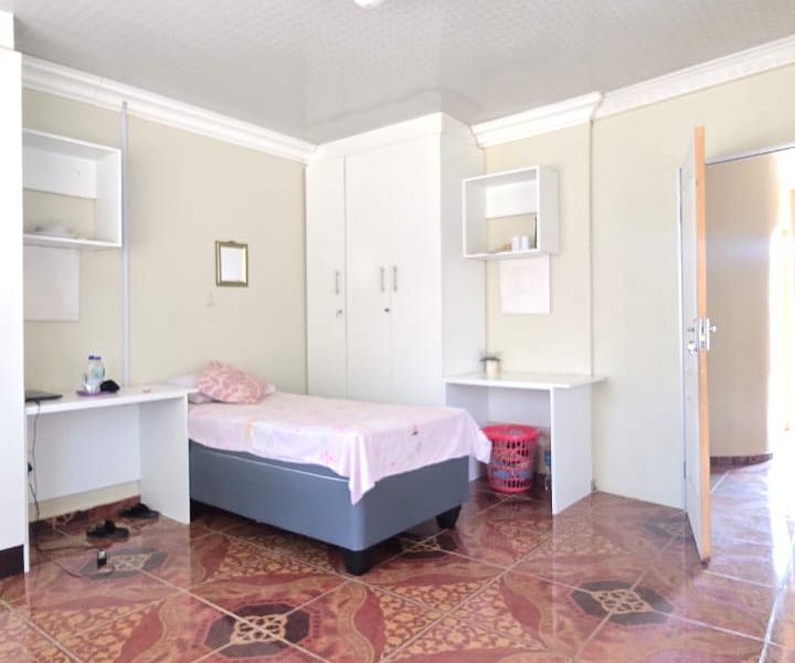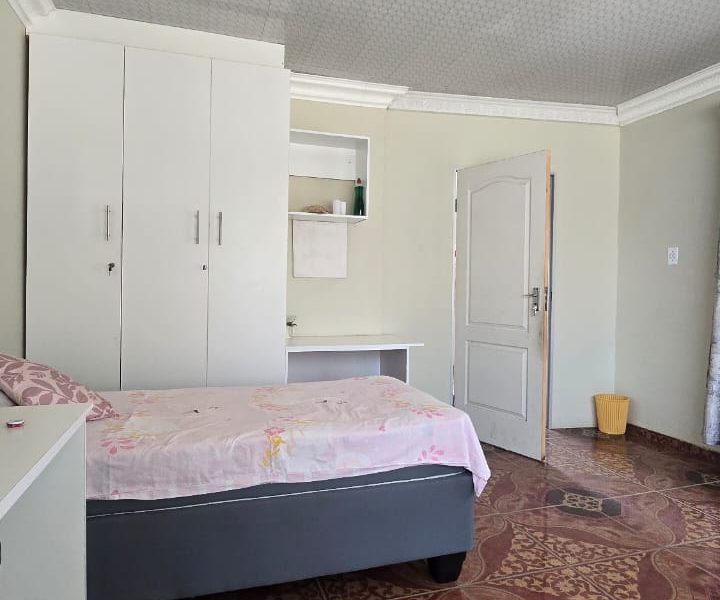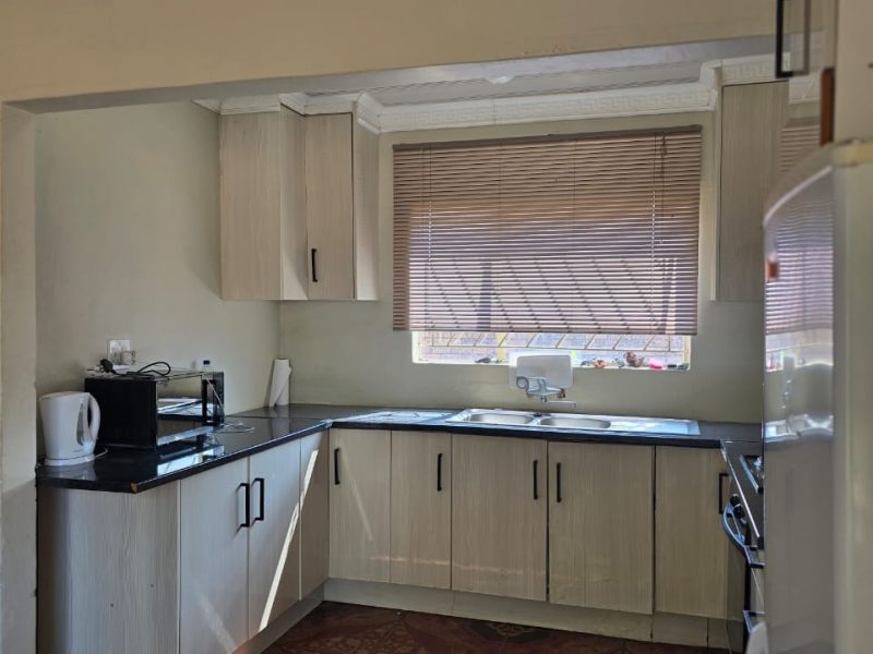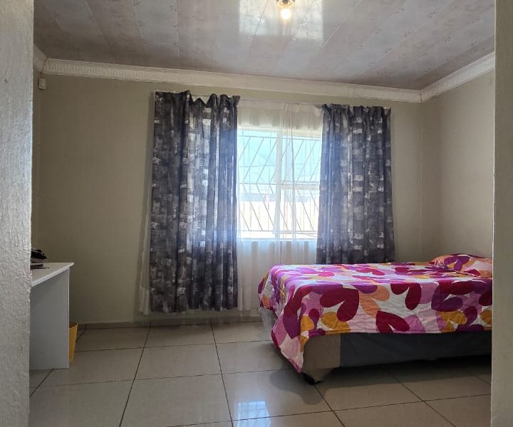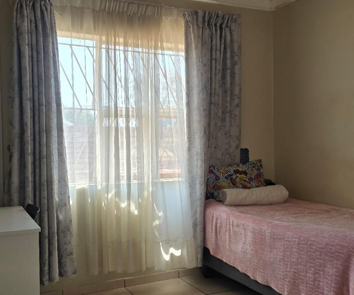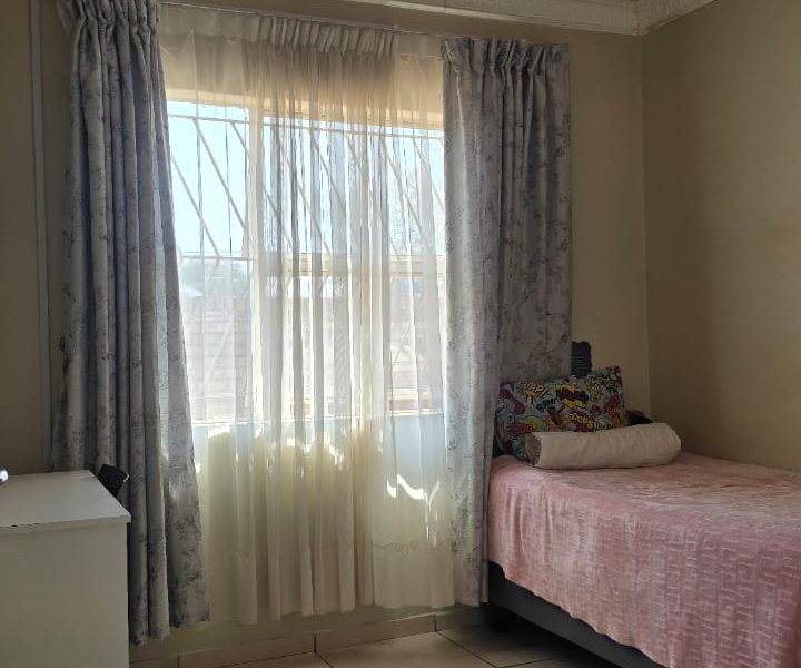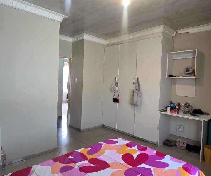 4 spacious bedrooms with built-in closets 2 bathrooms — 1 with a shower and 1 with a bath Open plan living and dining area Fully fitted kitchen Spacious paved yard Ample parking space & carport Wall around the yard Remote-controlled gate close to local amenities — schools, public transport, North-West University, Nursing College, Morena Manor Shopping Mall, filling station, and government departments.